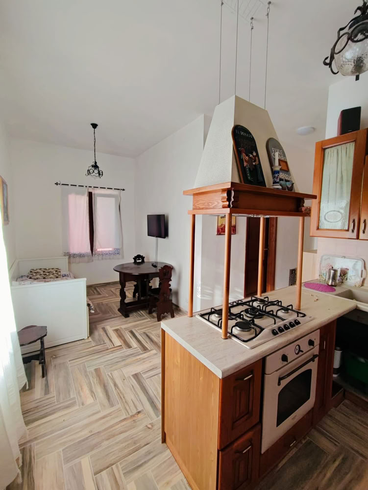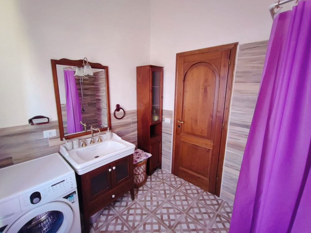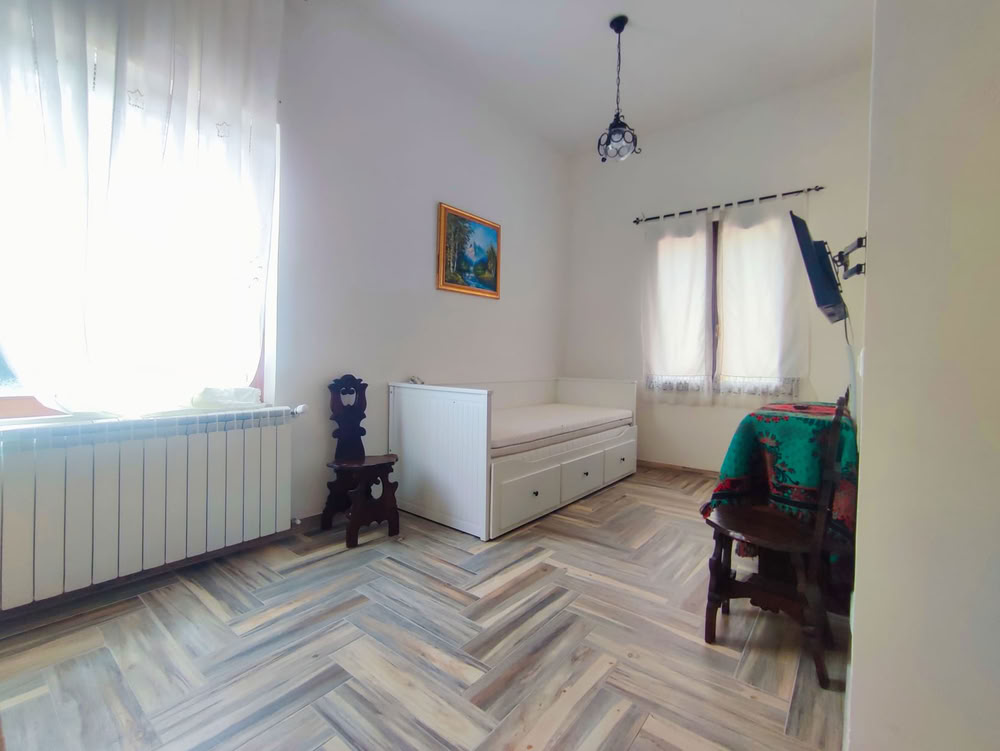 Appartamento al primo piano, all’interno di un contesto immerso nel verde e protetto da cancello automatico. Bilocale composto da salone con angolo cottura munito di frigo, forno, moka per il caffè, smart tv e divano letto con tre ampi cassettoni. Camera da letto matrimoniale e bagno con lavatrice, doccia, wc e bidet.