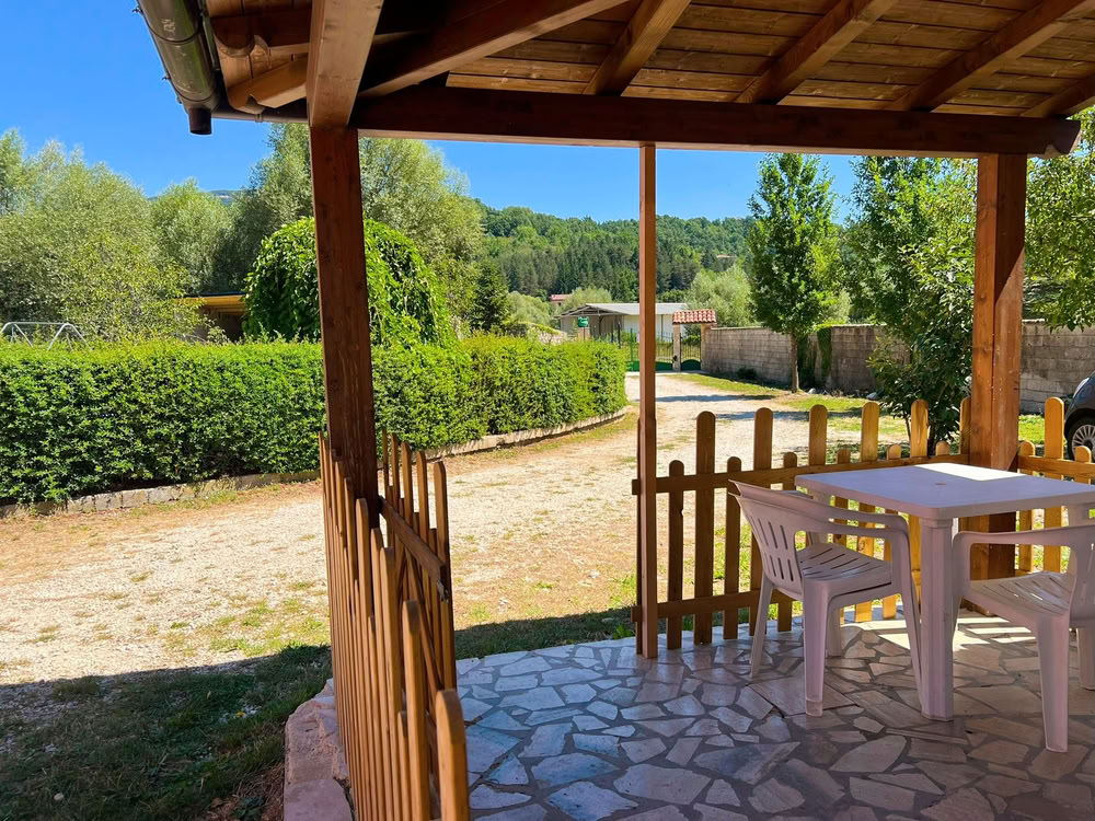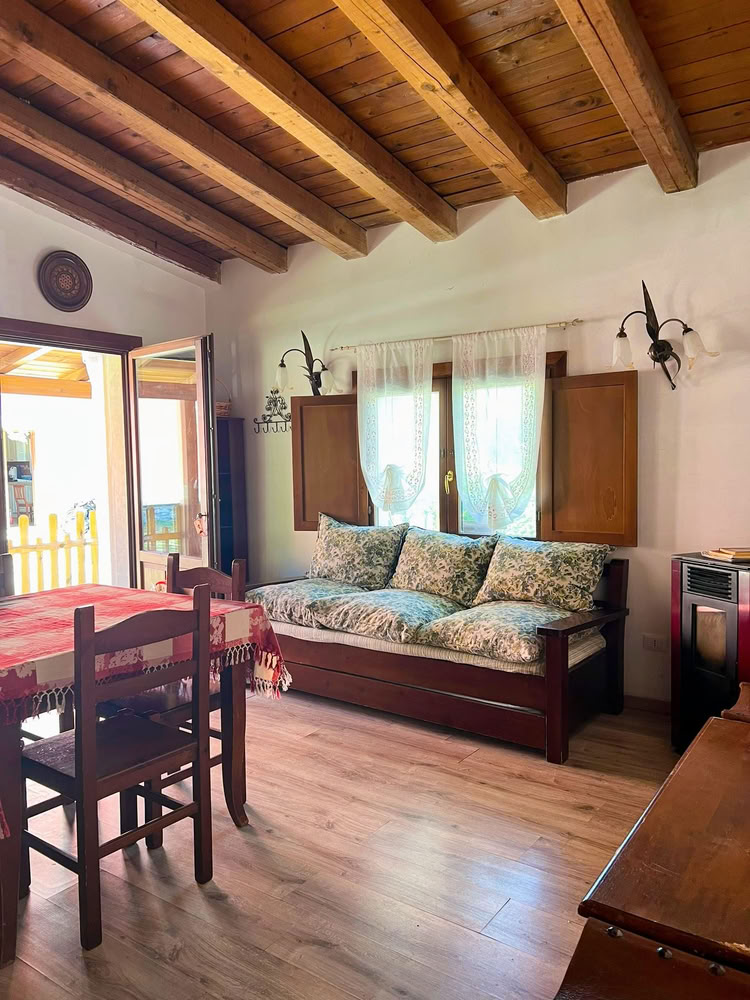 Chalet con spazio esterno recintato, all’interno di un contesto immerso nel verde e protetto da cancello automatico. Struttura indipendente composta da salone, divano letto, angolo cottura munito di frigo, forno, lavatrice e macchina per il caffè a capsule. Camera da letto matrimoniale con smart Tv e bagno con wc munito di doccino per bidet.